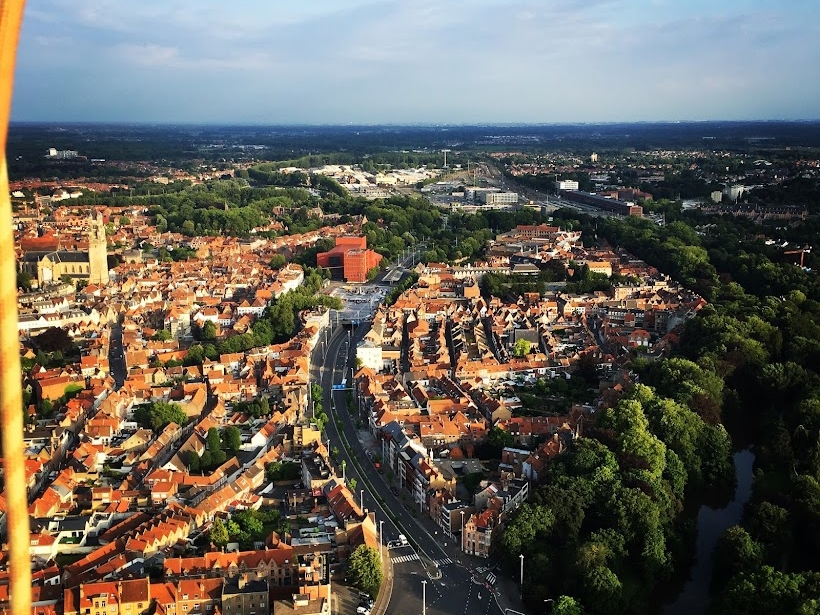 Brugge is één van de mooiste steden van Europa. Maak een ballonvaart over deze romantische stad met zijn kronkelende steegjes en romantische reien. Waan je bijna in de middeleeuwen. Brugge bezit ook moderne architectuur zoals het Concertgebouw, dat tot de belangrijkste in Vlaanderen behoort. Al van vrij ver te herkennen. Het Belfort op de Grote markt in Brugge is één van de pronkstukken van de stad.